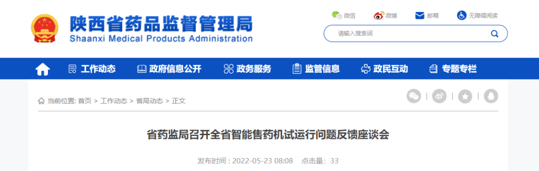 2022年5月底,陕西省召开全省智能售药机试运行问题反馈座谈会,探索全省智能售药机零售新业态管理。